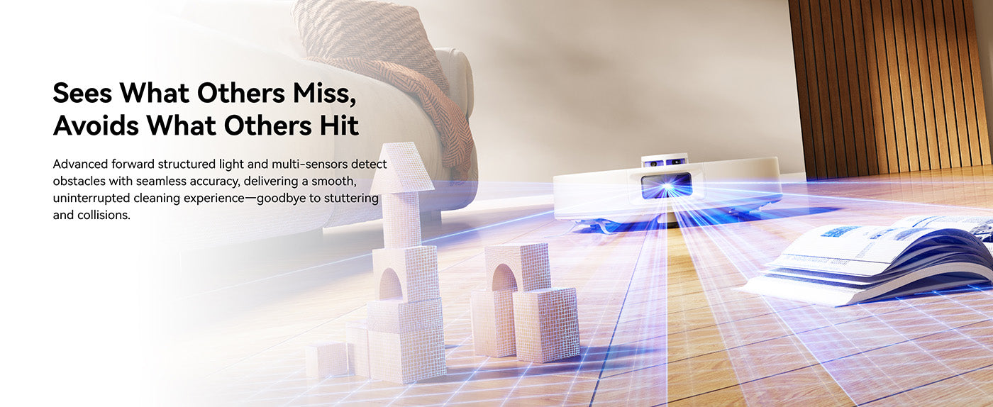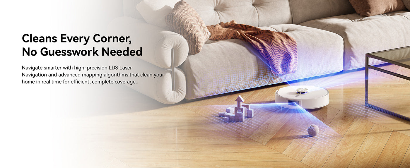 Precise Navigation & Obstacle Avoidance: Using high-precision LDS Laser Navigation, Narwal Freo S robot mop & vacuum scans your home in 360° and creates accurate real-time maps for efficient path planning. It supports multi-floor map storage, making it ideal for multi-level homes. Advanced forward structured light and multi-sensors help detect furniture and low-lying obstacles, while 20mm obstacle-climbing ensures seamless movement across thresholds and rugs.